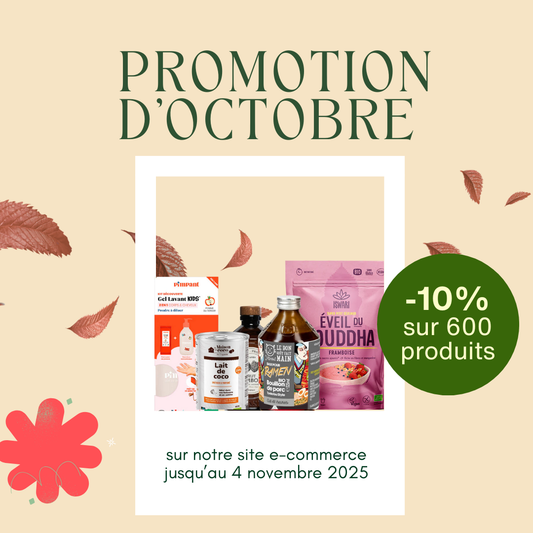 *Ingrédients issus de l'agriculture biologique - ① 44 % du total des ingrédients d’origine agricole sont issus du commerce équitable contrôlé selon le référentiel FiABLE. Plus d’informations sur www.BIOPARTENAIRE.com.