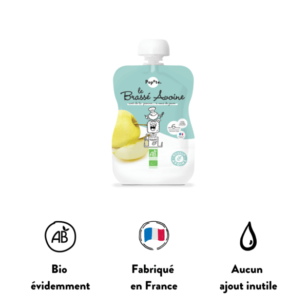Boisson d'avoine* 54% (eau, flocons d'avoine* 8,5%), pomme* 45%, jus de citron concentré*. *Issus de l'agriculture biologique.