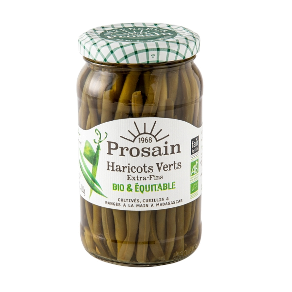 Haricots verts bio et équitables cueillis et rangés à la main.